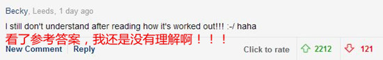 而一位伦敦网民写道:“我一点儿头绪都没有啊摔。我也好想能聪明地回答出类似的问题,可是我的大脑不听使唤啊。”
