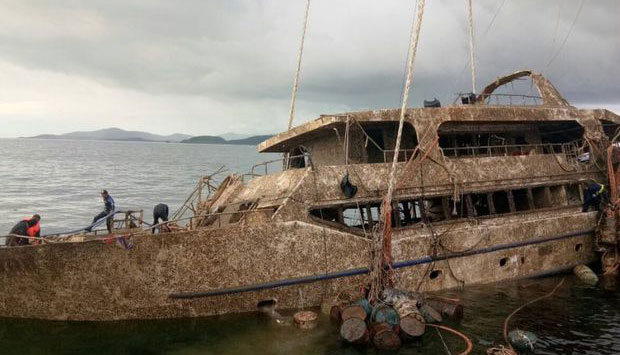早些时候,由于天气原因,打捞工作一度暂停。到下午约5点左右,沉船被打捞出水。《曼谷邮报》称,沉船残骸周一将被运至船坞,接受仔细检查。
