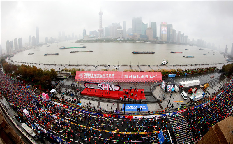 11月18日上午,在一个不算完美的天气,风雨无阻的38000名跑者在上海国际马拉松挑战自我。从金牛广场、九江路、上海展览中心,到复兴公园、陆家浜路、龙腾大道,他们最后的冲线地标,就是刚刚见证上海上港举起中超火神杯的上海体育场。