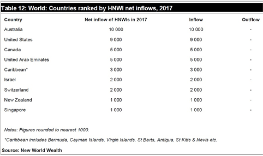 然而,根据咨询公司新世界财富(New World Wealth)的最新英国财富报告,2017年,虽然有约1000个高净值个人进入英国,但同时有约5000人离开。英国对这些富人的吸引力明显下降,取而代之的是南半球的澳大利亚。报告认为:“英国传统的高遗产税,使得澳洲和美国对这些高净值个人更具移民吸引力。”