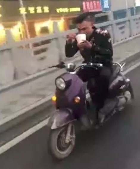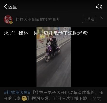 桂林小哥双手离把,气定神闲,正在嗦粉...▼