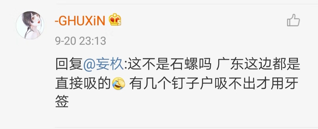 南方人天生就具备神秘的力量,双唇紧闭,腮帮子微微吸进去,轻巧地一嘬,甜美的螺肉就盘旋着落入口中。