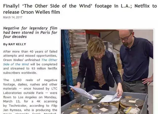 这些保存三十多年,包含8毫米、16毫米、与35毫米不同规格底片,正是电影大师奥逊·威尔斯未完成遗作——《风的另一边》的原始素材。