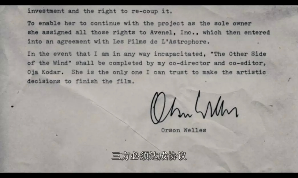 在原片中,我们也能从老导演的资金困境,窥见威尔斯缠绕一生的掣肘。