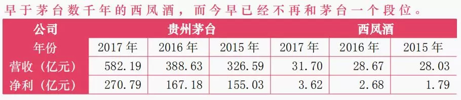 早在6 000多年前的仰韶文化时期,就有了西凤酒的记载。而茅台,历史不过300年。只可惜,现在的西凤酒早已不再和茅台一个段位。