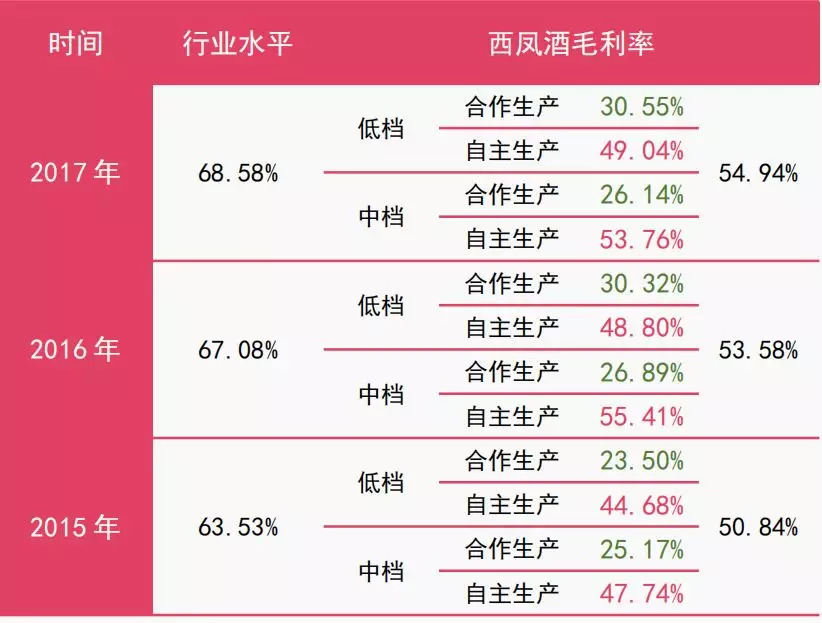 大量勾兑基酒的采购,一定程度上会影响西凤酒的议价权。根据其招股书显示,2015-2017年西凤酒各年份的毛利率,低于行业内可比公司平均毛利率近14个百分点。