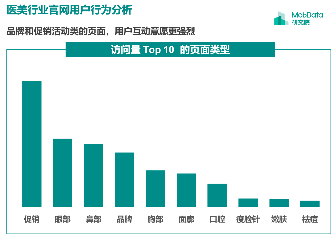 品牌和促销活动类的页面,用户互动意愿更强烈,眼部、鼻部、胸部等项目的访问量较多。