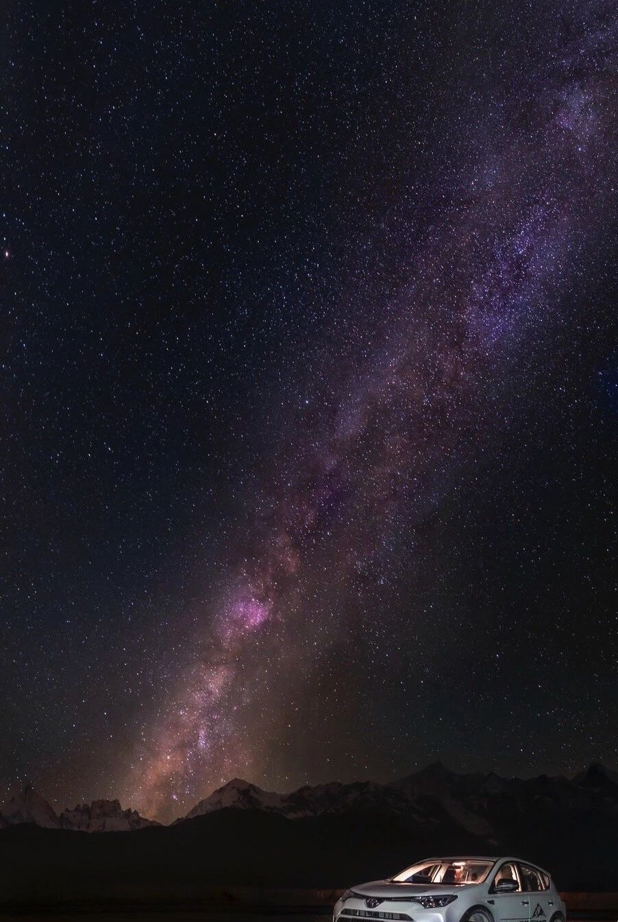 夜晚停下休憩,抬头发现漫天星空,这就是自驾路上偶遇的惊喜吧。