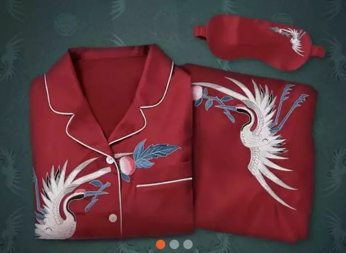 第二件则是结合了畅音阁蝙蝠和仙鹤纹样、乾隆时期的戏衣设计而成的真丝睡衣——