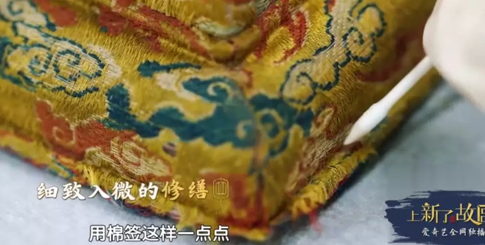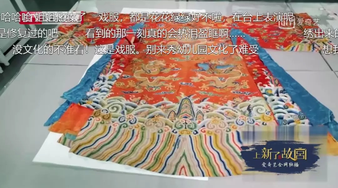 当修复师拿出来这件珍贵的蟒袍时,所有人都被古代精细的绣工所震撼了。
