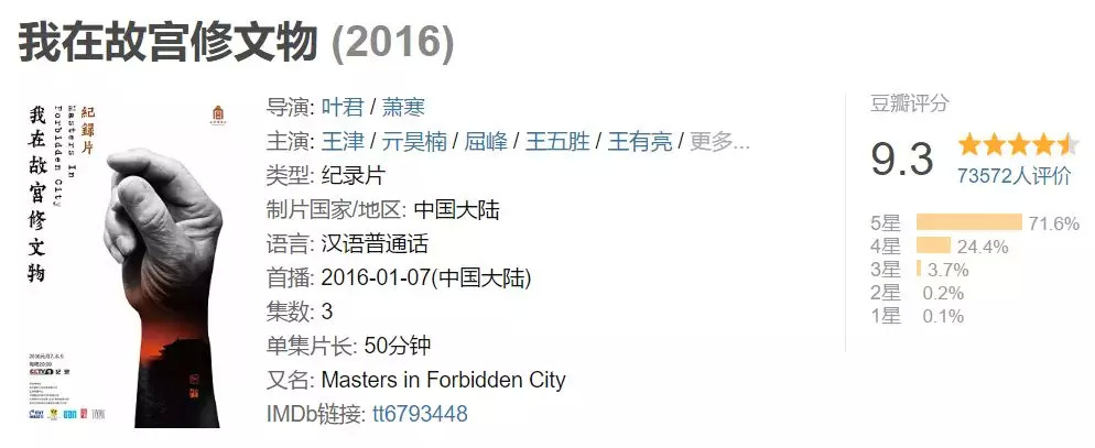 《我在故宫修文物》播出后,不仅赢得了极高的文化口碑,更是带动了2万多年轻人报名参加修文物;