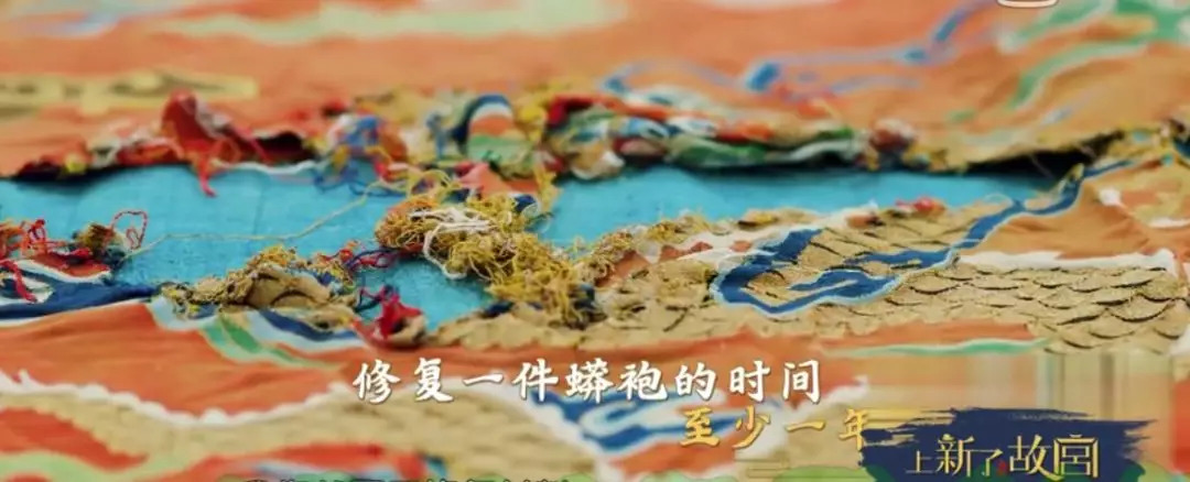 即便这样,这件蟒袍戏服也已经破损不堪,修复起来十分困难,据修复师透露,需要花费60万,耗费一年的时间,可见人力物力成本都非常的高。