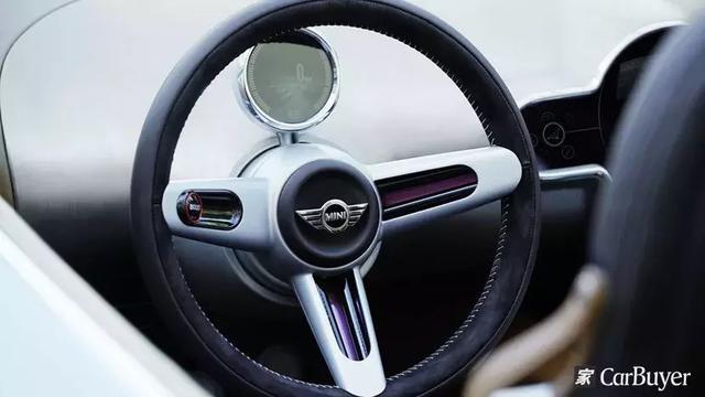 至于Vision的中控则采用了大量金属饰板及软质材质进行包裹,方向盘采用三幅的复古式设计,但在材质上使用的是较为高档的皮质,并且在方向盘上采用较为简洁的控制按键。方向盘上方依旧是经典的独立转速表设计,不过目前的MINI车型由于中控车机屏幕的放置,使得速度表及常规显示信息都集中到了一块仪表盘中。