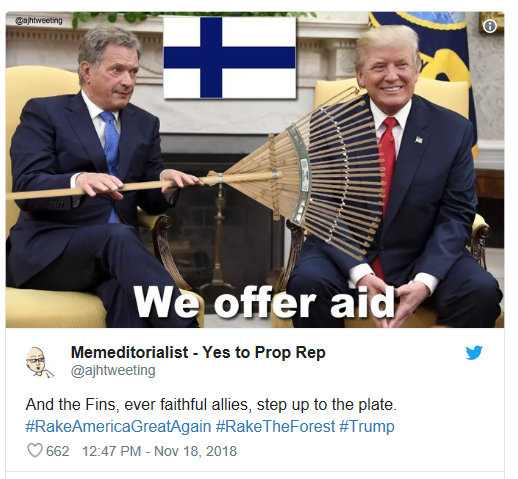 不过芬兰总统尼尼斯托(Sauli Niinisto)在之后接受当地报纸采访时澄清,自己未曾给特朗普提出过这样的建议。尼尼斯托说,他介绍了芬兰对森林持续监控和保育的措施,但不记得提到关于耙树叶的事。