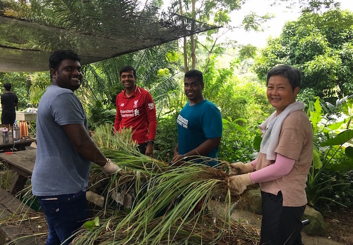在新加坡有机农场“聚友爱农场 (GUI)”,今年60岁的Glori看上去精神饱满,她脖子上搭着围巾,手上戴着手套,与几位印度志愿者一边说笑一边整理香茅草。Glori最近找了一份全职的工作,所以从每周来两次农场,变成了一周一次,“平时坐在空调里看不到太阳,来这里流流汗,顺便排毒,还能结交和了解不同种族、文化的朋友。”每次来有机农场,她都感到心情开阔。