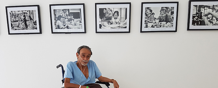 在新加坡临终关怀机构“雅西西慈怀病院”的一楼公共区域,一组黑白色肖像照片构成的小型展览常常吸引人们的目光。这些照片出自69岁的自由摄影师Alan Lee,他曾因患有终末期慢性阻塞性肺病住进了慈怀病院,在生命最后日子里,他记录下了病患、志愿者以及护理人员们的日常生活。