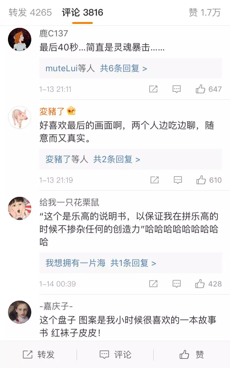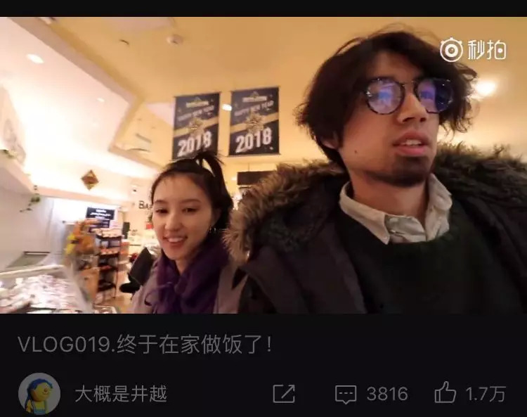 博主@大概是井越是国内较早引入Vlog的高人气Vlogger之一,以井越的Vlog《终于在家做饭了》为例,这部534万次观看、1.7万点赞的五分钟Vlog主要记录了井越和高人气女友小八一次在家做饭的过程——从两人在超市选购食材,吐槽物品包装设计,到在家做饭、吃饭的点滴细节。两个不食人间烟火的年轻人做饭的过程有一点笨拙又有点温馨,记录的风格很随性、幽默、真实,引发网友对“美好生活”的共鸣。
