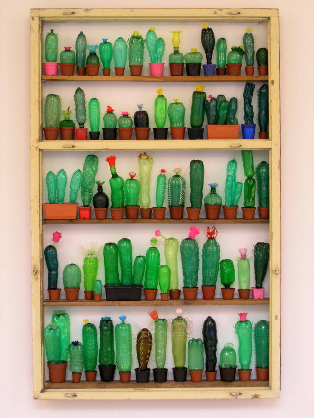 重新切割,互相组合,搭配上一点点想像和灵机一动,它们就是你案头上情趣盎然的多肉植物……当然,有时候为了一种特殊颜色的塑料瓶子,还是够磨人的。