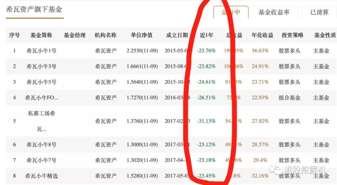 2017年的私募收益之王,因重仓多只港股蓝筹股,而拿到200%左右收益、一时爆红的精品私募“希瓦资产”,今年以来的基本亏损都在20%以上。