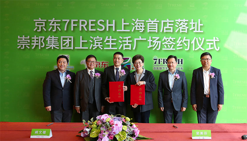 11月19日,崇邦集团与京东7FRESH举行了签约仪式,正式宣布京东7FRESH上海首店将落址崇邦集团位于上海虹口区北外滩地区的上滨生活广场。双方在签约仪式上表示:崇邦集团与京东7FRESH的此次合作,是打造15分钟社区生活服务圈的具体实践,通过线上线下消费场景的融合,为消费者带来更好的购物体验。