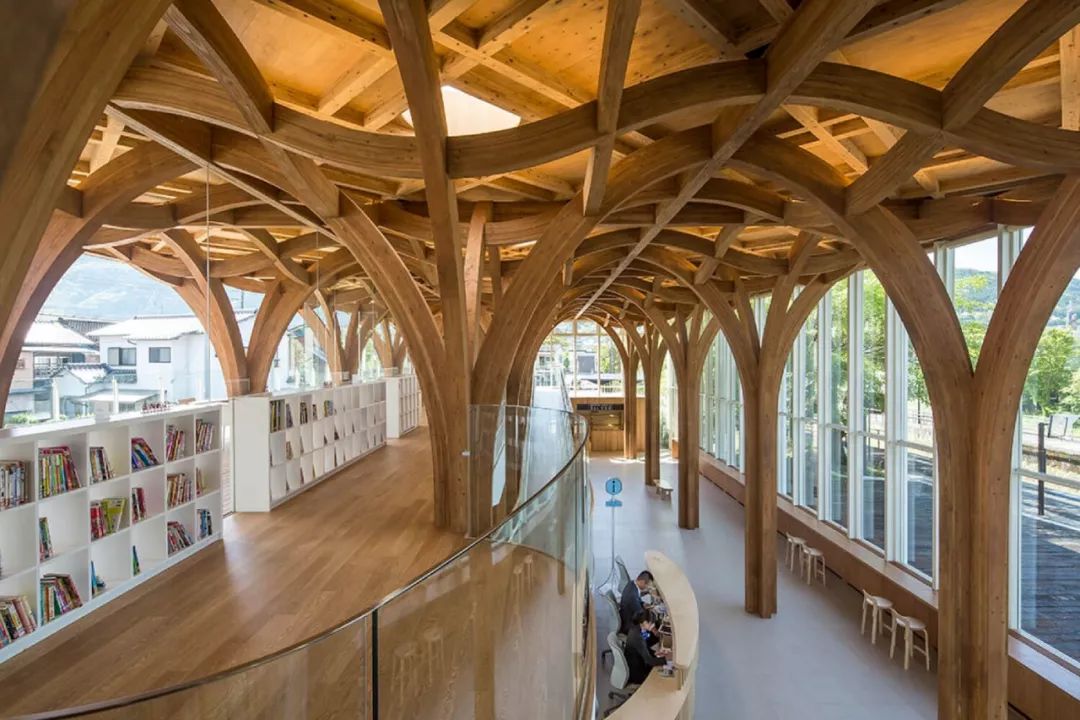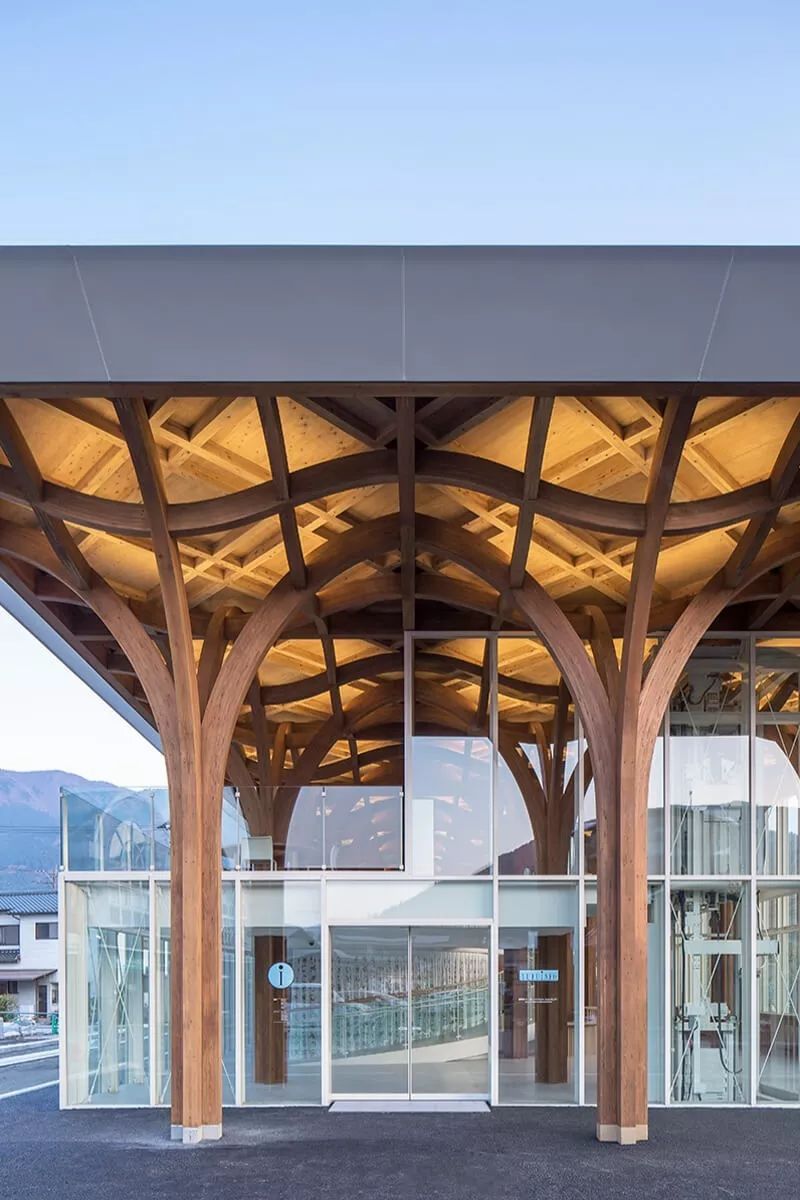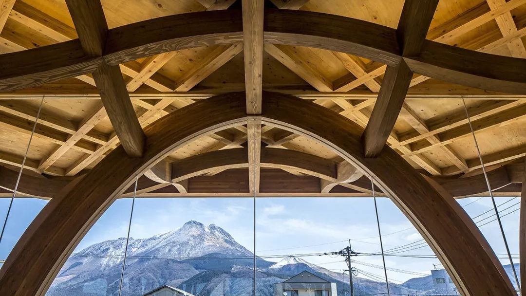 由布旅游讯息中心,肩负着整个大分县和九州观光游客的枢纽,是重要的旅游讯息服务中心,而建筑本身也未由布院注入新的形象。Y字型的拱形木柱为空间创造出如同森林般的自然氛围,透过窗户还能看到由布院车站——它的设计者是另一日本建筑大师矶崎新。