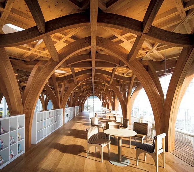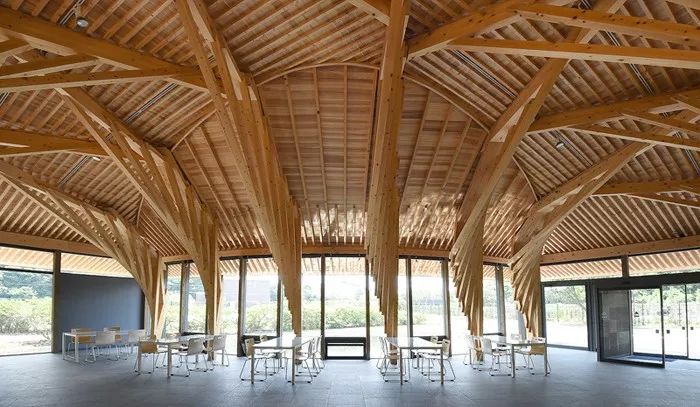 这当然也是加藤詞史的建筑语言和特色,以来自自然的木料,延续日本传统建筑的余韵,但却以现代科学的力学来重新组合,呈现出新的功用。