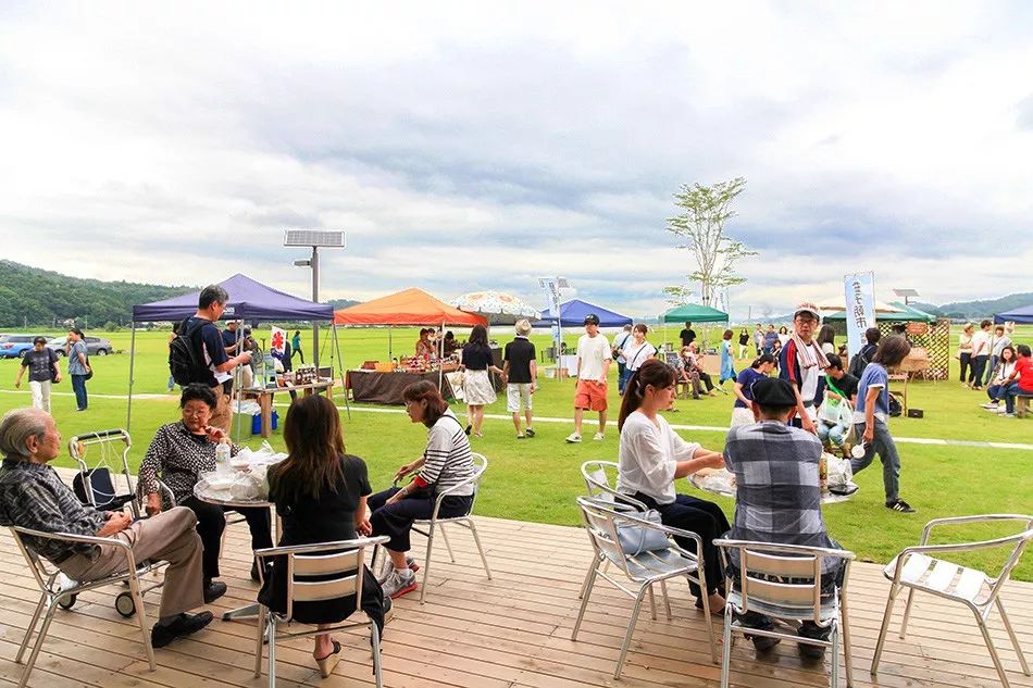车站前的空地,因修葺成草坪也变成当地人喜爱的场所,无形中成为了一个公共空间。