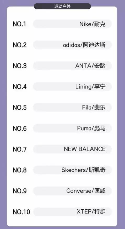 这个排名和安踏在世界运动品牌上的排名相同,也是在阿迪达斯和耐克之后。