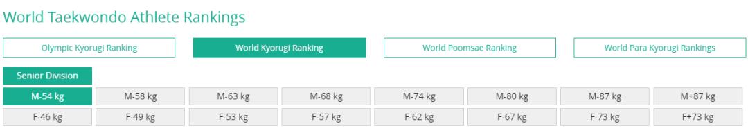 WT积分排名分为奥运积分排名及世界积分排名,每个月都会更新变动。