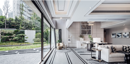 不仅如此,中海天钻打破着传统的居住横向延伸的理念,以6.8米局部墅级挑高纵向延伸空间予城心生活别样的空间体验,空间感更强同时,赋予生活更多大胆的可能性匹配着城市显赫人群的生活格调。