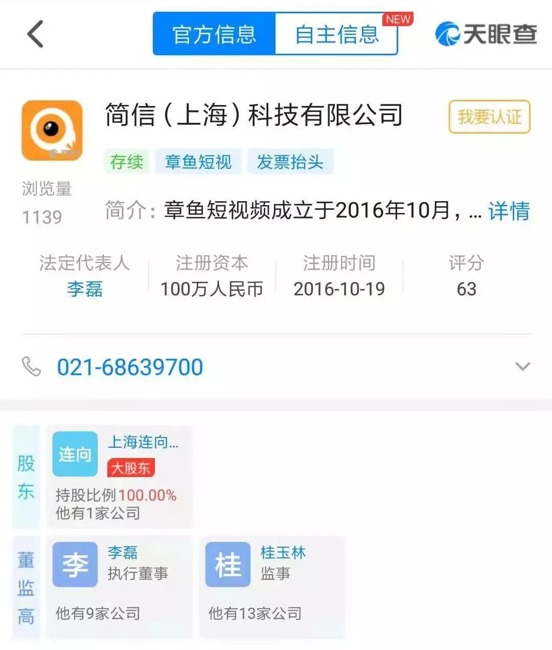 所以最终抱着不信邪的念头,我又去查询了一下这款社交软件“连信”的开发者,结果发现是一家叫“简信(上海)科技有限公司”的企业。