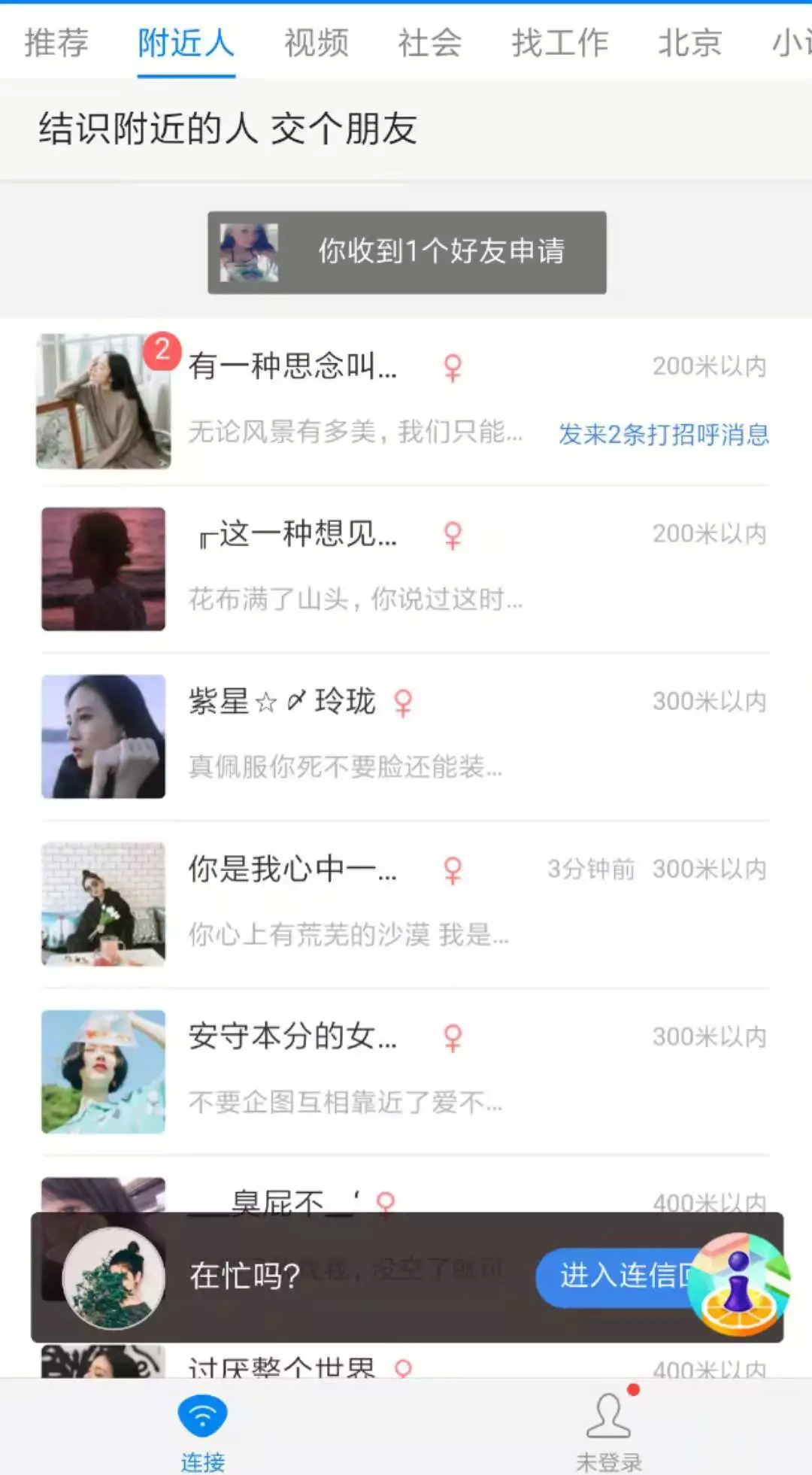 你看,我这都还没登录呢,人家已经帮我准备好了这么多附近的漂亮女孩子,真是善解人意。