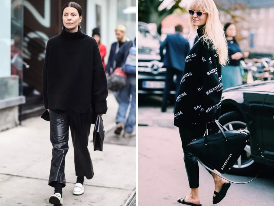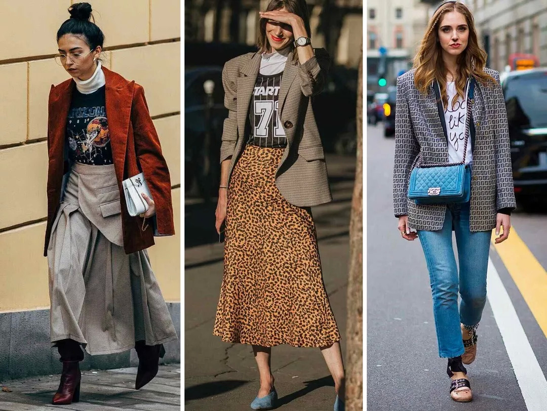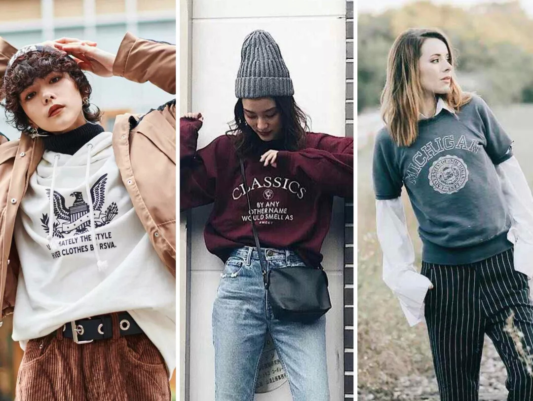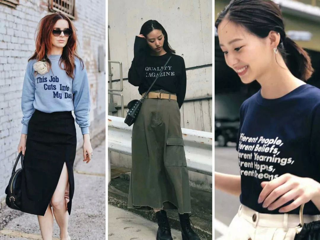1. T恤+长袖。比较宽大的字母T恤、卫衣和毛衣,秋冬可以在里面叠穿高领内搭,穿出趣味层次感。