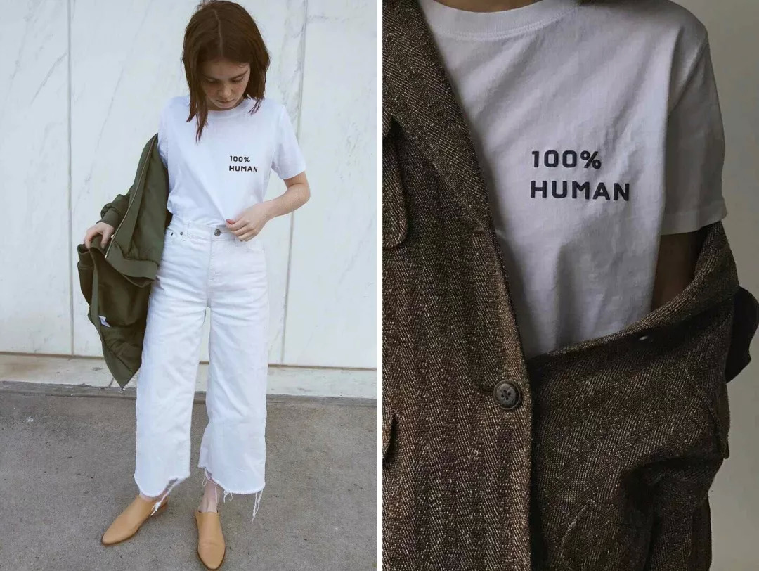 Everlane经典的100%HUMAN系列,短袖卫衣都有。时尚博主Reese Blutstein在内的很多博主都穿过,简短的slogan,精致又时髦~