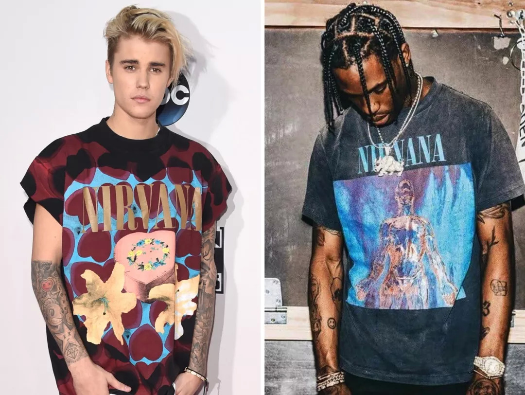 像Justin Biber就不止一次穿Niravana T恤,以向自己崇拜的乐队致敬!