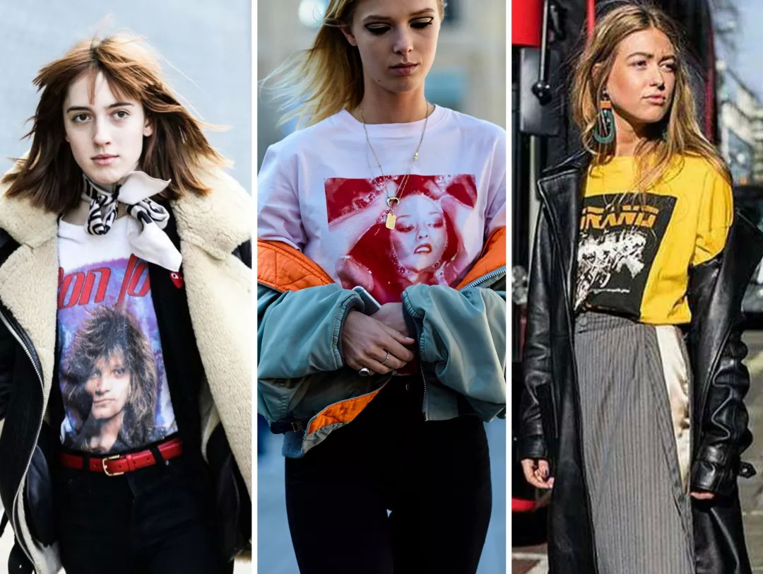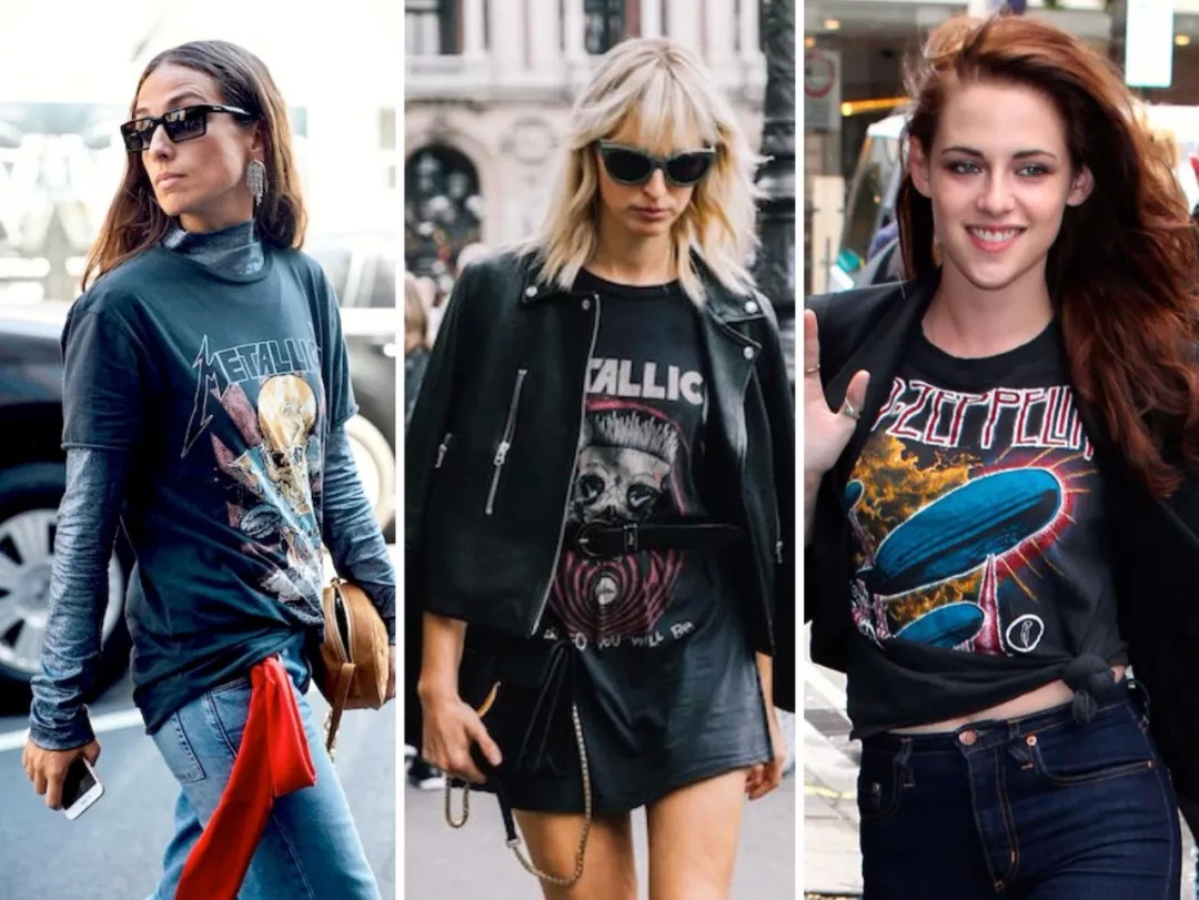 Band T恤由于其特殊的寓意和设计,往往风格比计较硬朗。如果不希望这种摇滚、颓废风格过于明显,在穿搭上就需要费点心思~
