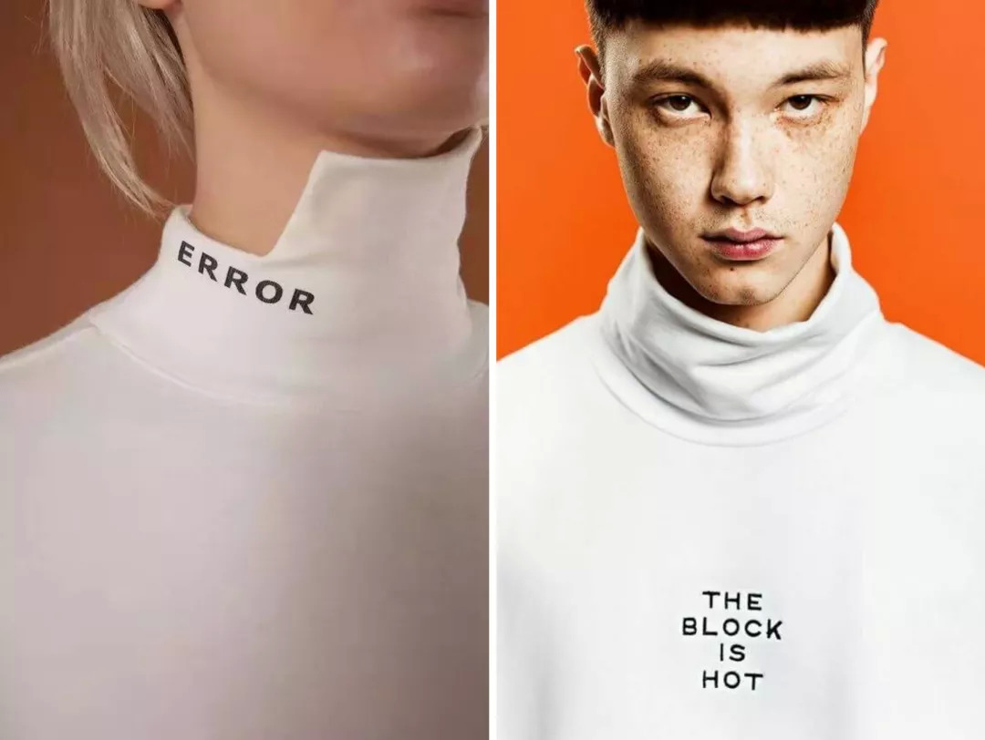 1. 大块的字母slogan更街头化,像Vetements、Thrasher、Supreme等就经常使用涂鸦式、哥特字体、火焰文等字体的Slogan来彰显个性。