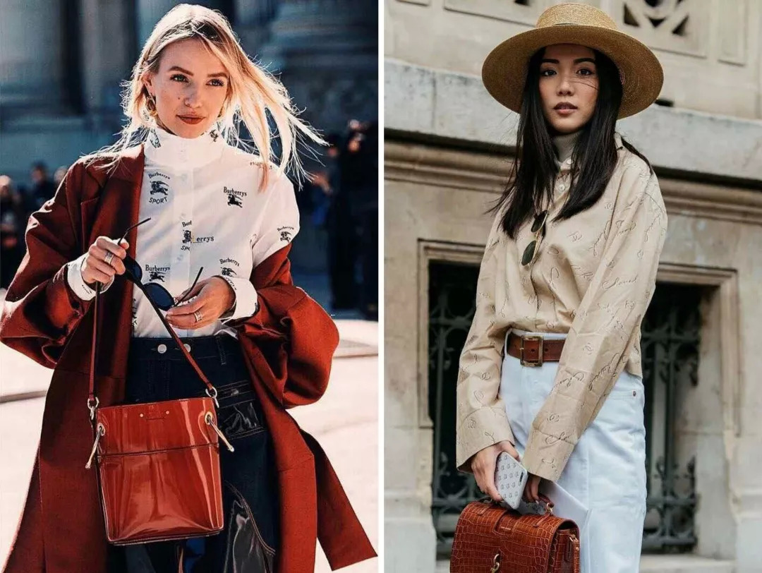 斯文的妹子一定不要错过大面积logo衬衫设计,比普通衬衫多了精致和斯文的感觉!Leonie Hanne主Yoyo Cao分别选择了间距较大和与底色相近的款式,低调简约~