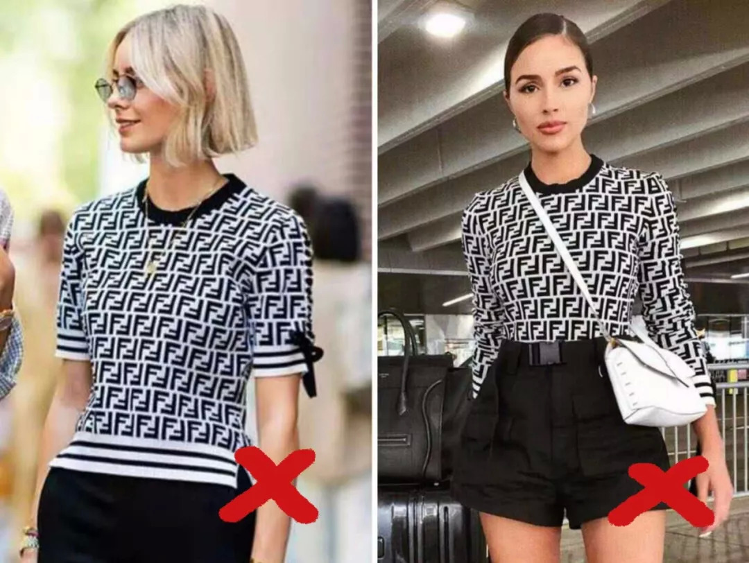4. 这种满身Logo的款式,挑选字体小,且间隔大的更显瘦!切忌选择大字母的紧身款,有视觉膨胀感,很可能造成土圆肥的效果哦!