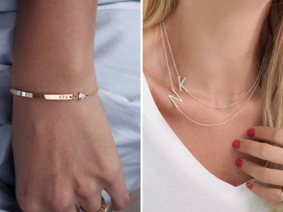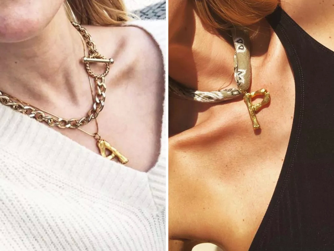 2. 大字母吊坠的款式比较摩登帅气,细长的“bar necklace”和单个小字母点缀的款式,就有很精致的感觉!