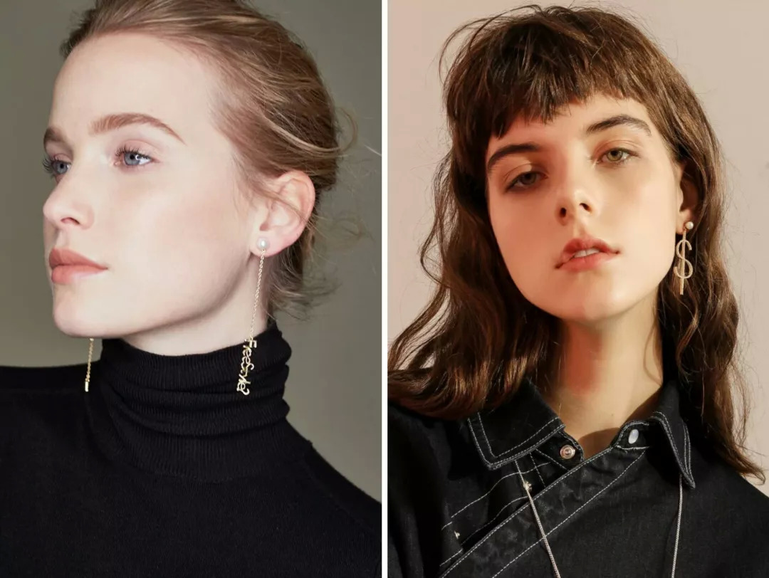 还有长款字母耳饰,拉长脸部线条,非常显瘦。这两款来自ZENGLIU~