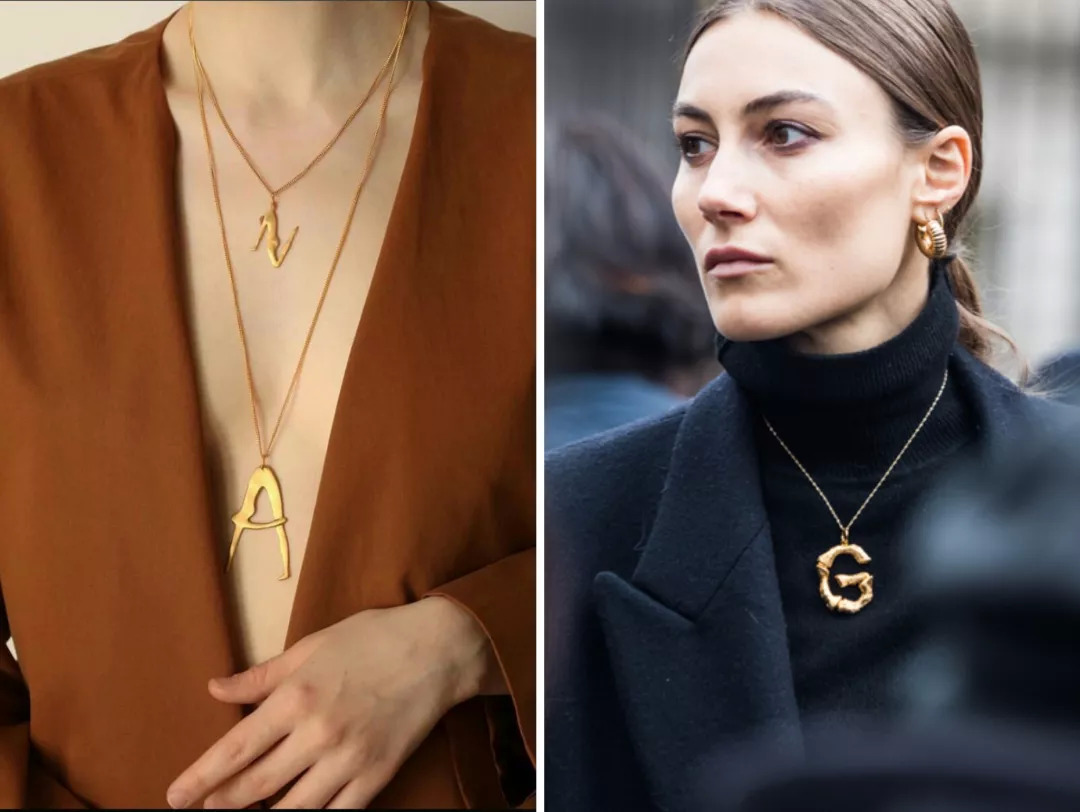 1. 字母吊坠项链。尤其是Celine这条,最近频频出现在各种街拍中,真的火的不得了,恨不得时尚博主人手一条!