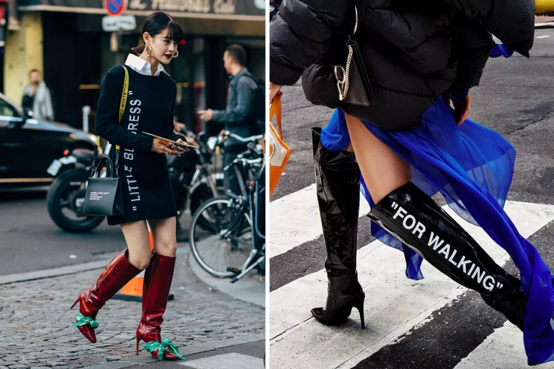 靴子加字母,也能让风格焕然一新。OFF-WHITE的这款亮皮“For Walking”靴,真的因为印刷字母slogan而潮爆了!!wuli Emma也有穿~