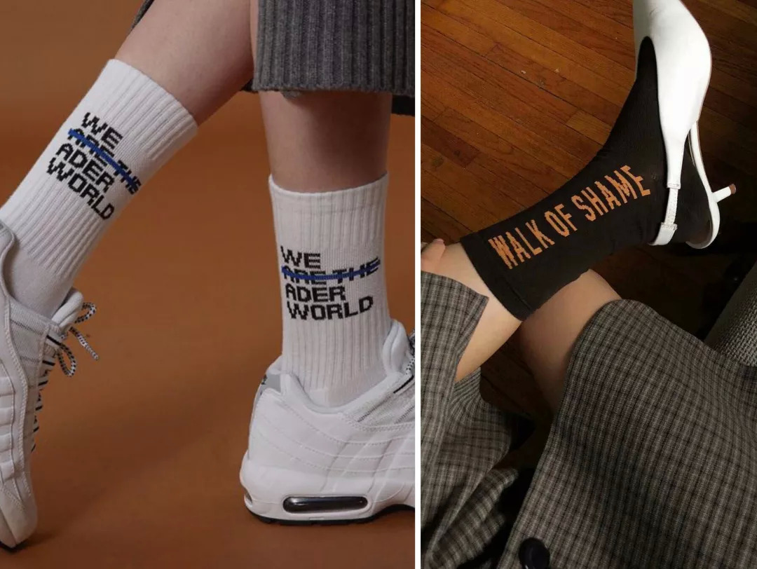 尤其在冬天,大家裹了一层又一层,露出一截带slogan或logo的袜子,时髦和态度都有了!