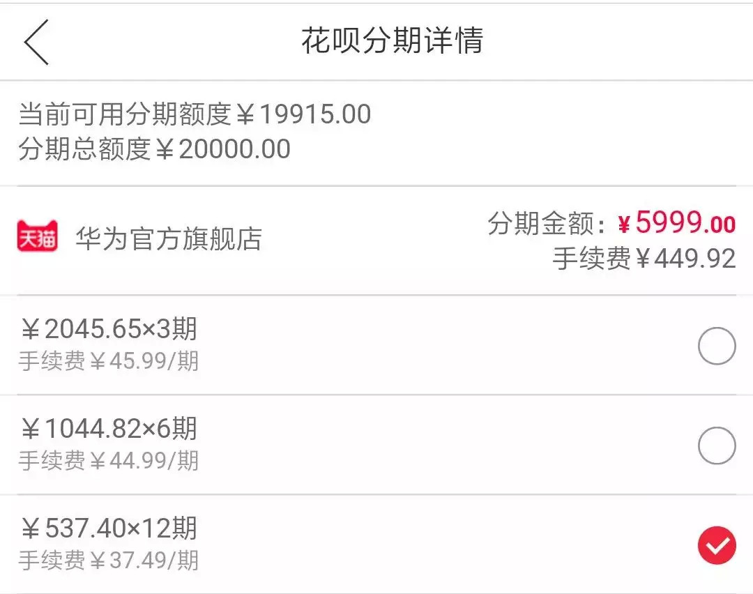 最近在虎扑上看到一篇帖子,一个男大学生暑假用花呗帮女朋友分期买了一部华为P20,分期12个月,每个月还466元。