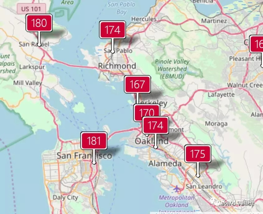 在北湾,圣拉斐尔(San Rafael )的为180,瓦列霍( Vallejo)为177。