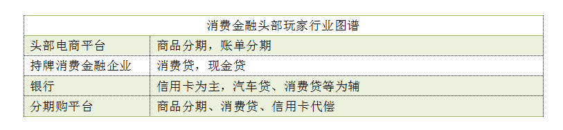 根据目前市场份额,消费金融场内玩家大致分为四股势力:头部电商平台,持牌消费金融企业,银行和新兴互联网分期购平台。它们的商业模式如下图: