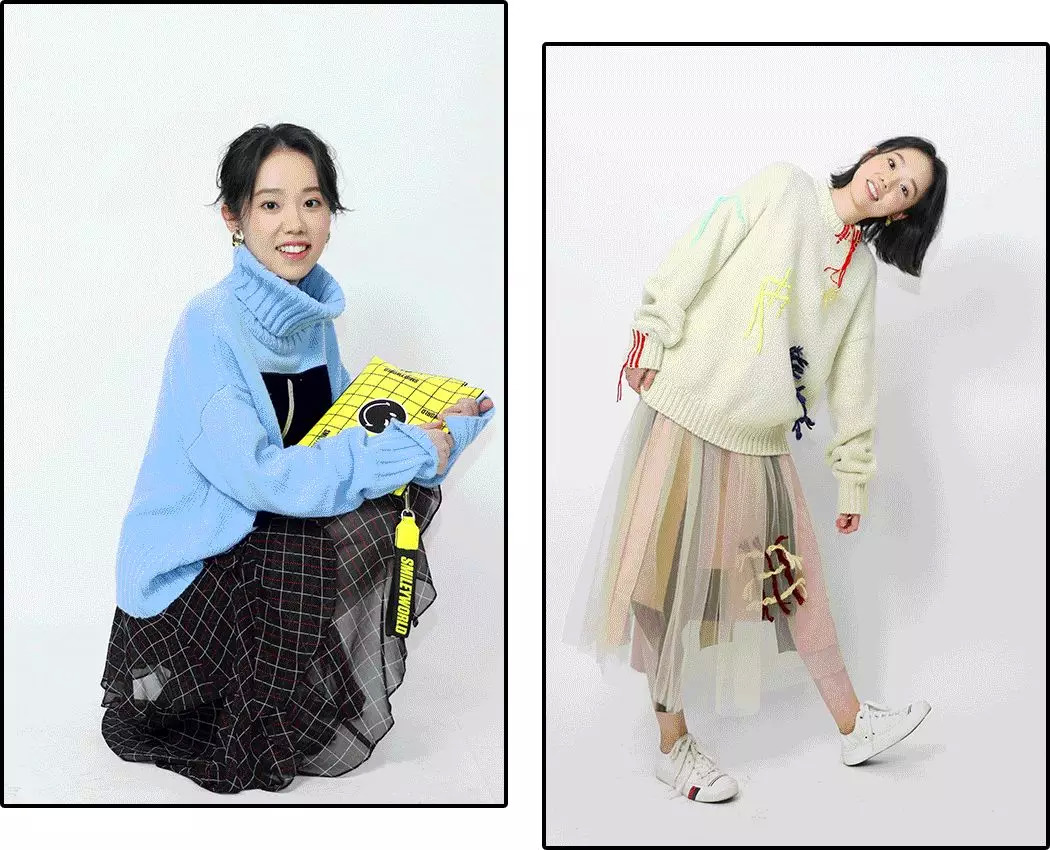再看看万万经过宇博点拨,用不大精选的时髦衣裳搭出来的效果。她比较喜欢日剧里的style,选了温暖系的米白色毛衣,有了彩色毛线的点缀,白毛衣也不无聊了。