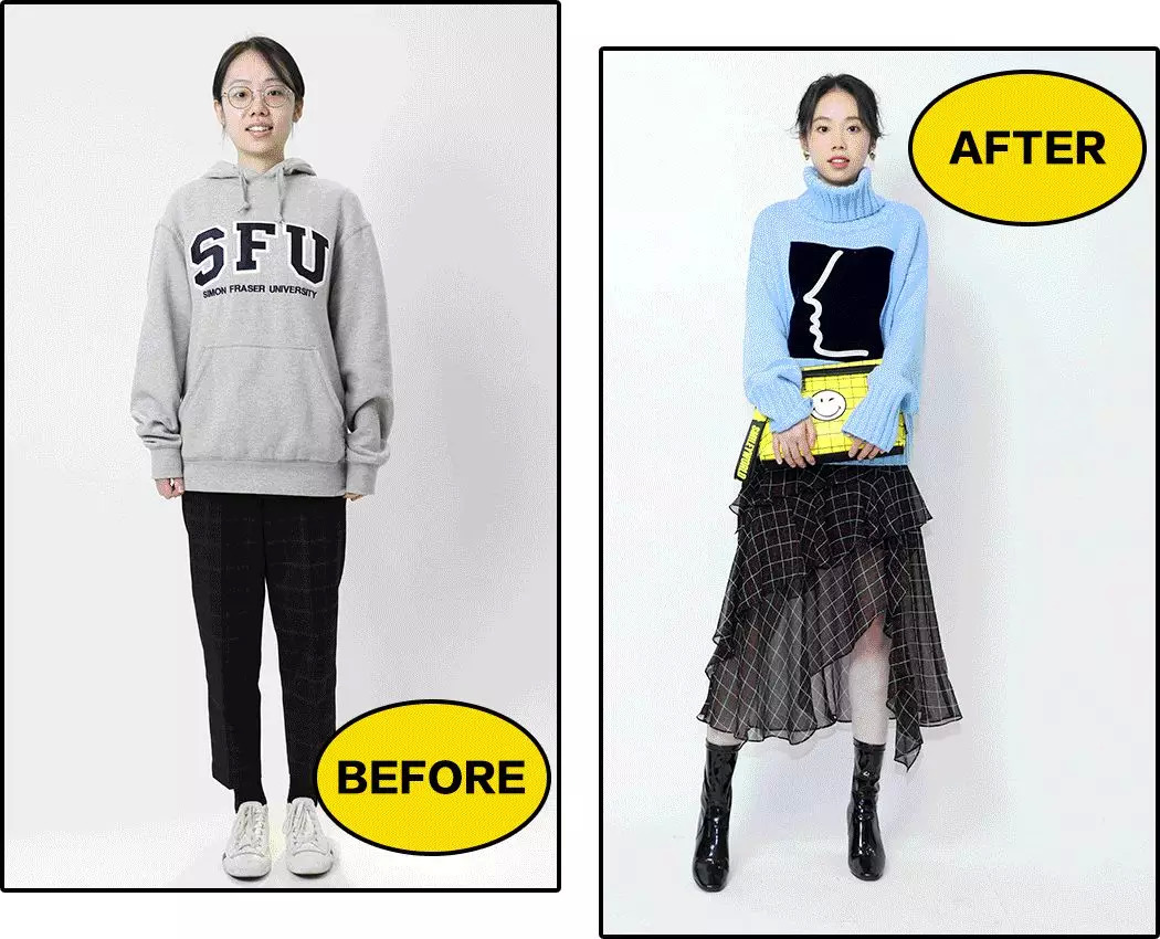 YY是个大四的社会学学生。自己喜欢穿比较符合学生身份的休闲服,这次呢最主要想突破一下自己平时不敢尝试的风格。