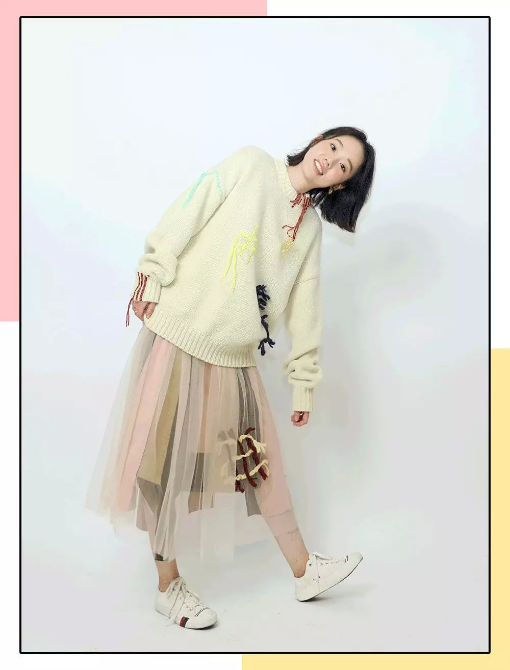 后来和她探讨吃什么东西可以补回发际线时,她才放松下来……给她搭配第一套是和她的气质满合的毛衣配纱裙。完全不挑人~气质甜的女生都可以这么搭。